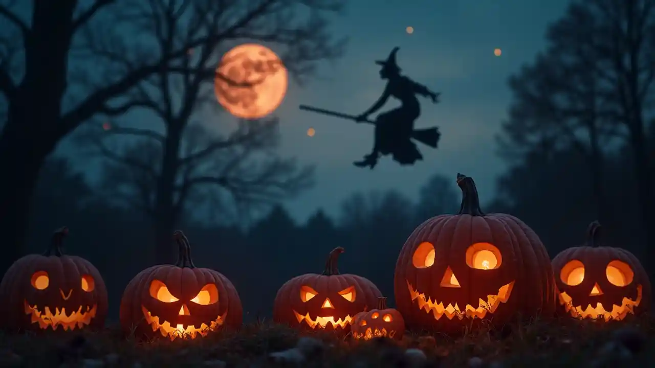 Mandhari ya Pumpkin ya Halloween na Silhouette ya Mchawi