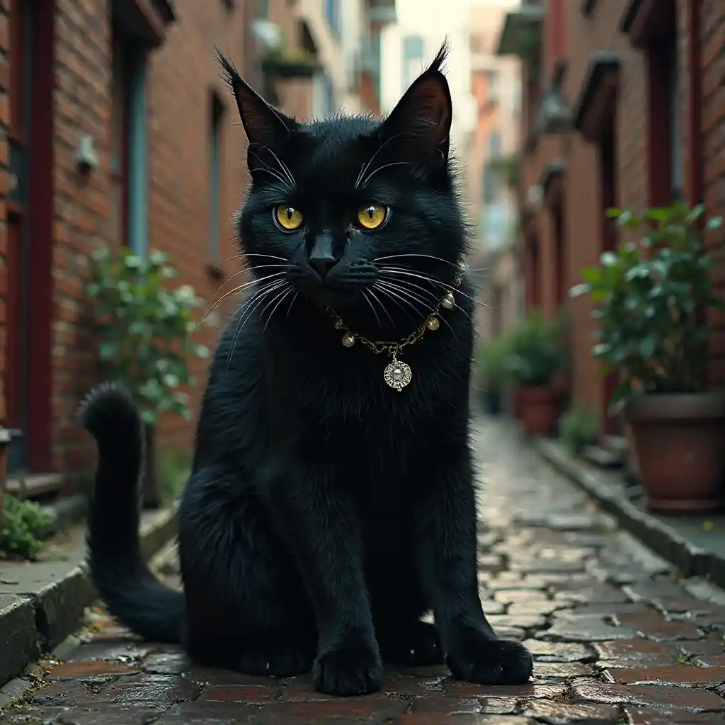 Black Punk Cat katika Frank Miller Style Alley