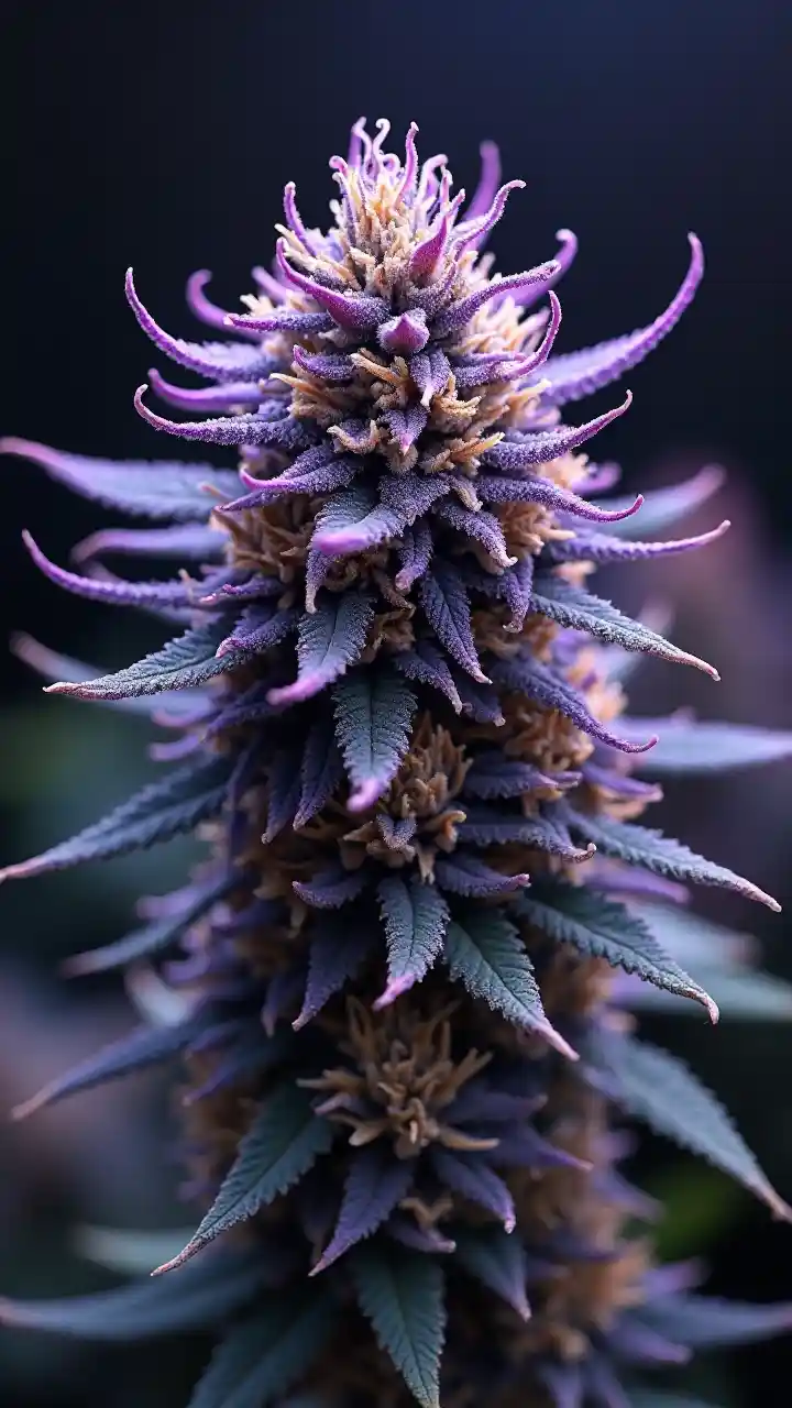 Maua ya bangi yenye rangi ya zambarau yenye kupendeza na yenye maelezo