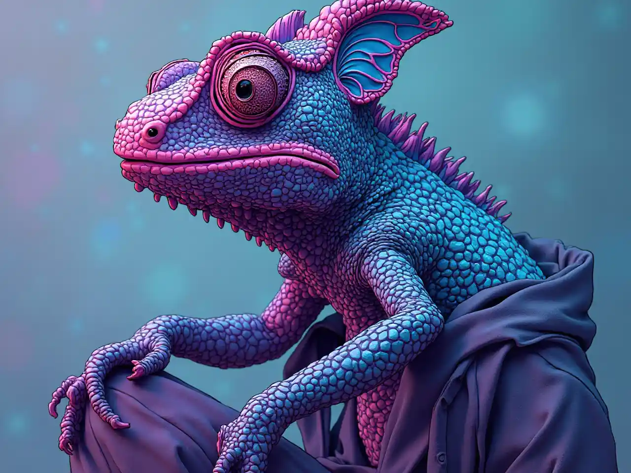 Picha ya Neo-Pop ya Chameleon ya Zambarau