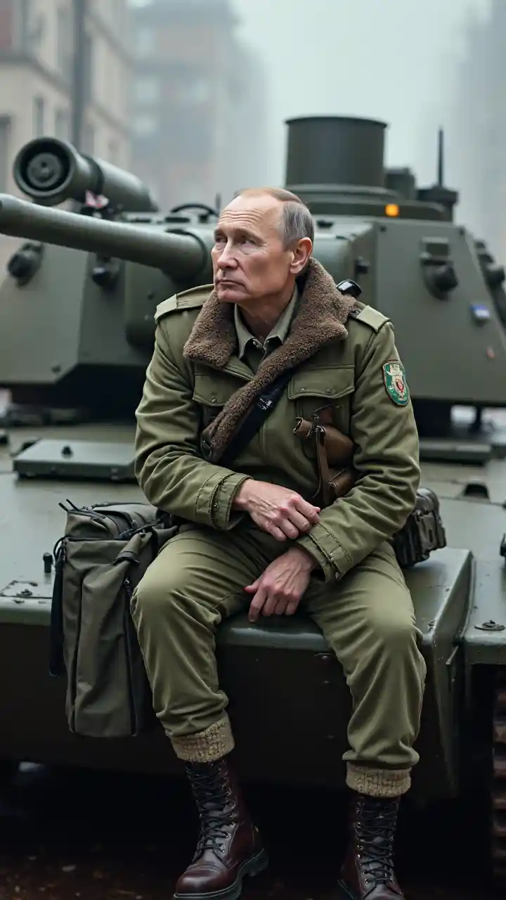 SophiaVladimir Putin katika mavazi ya kijeshi ameketi katika tank