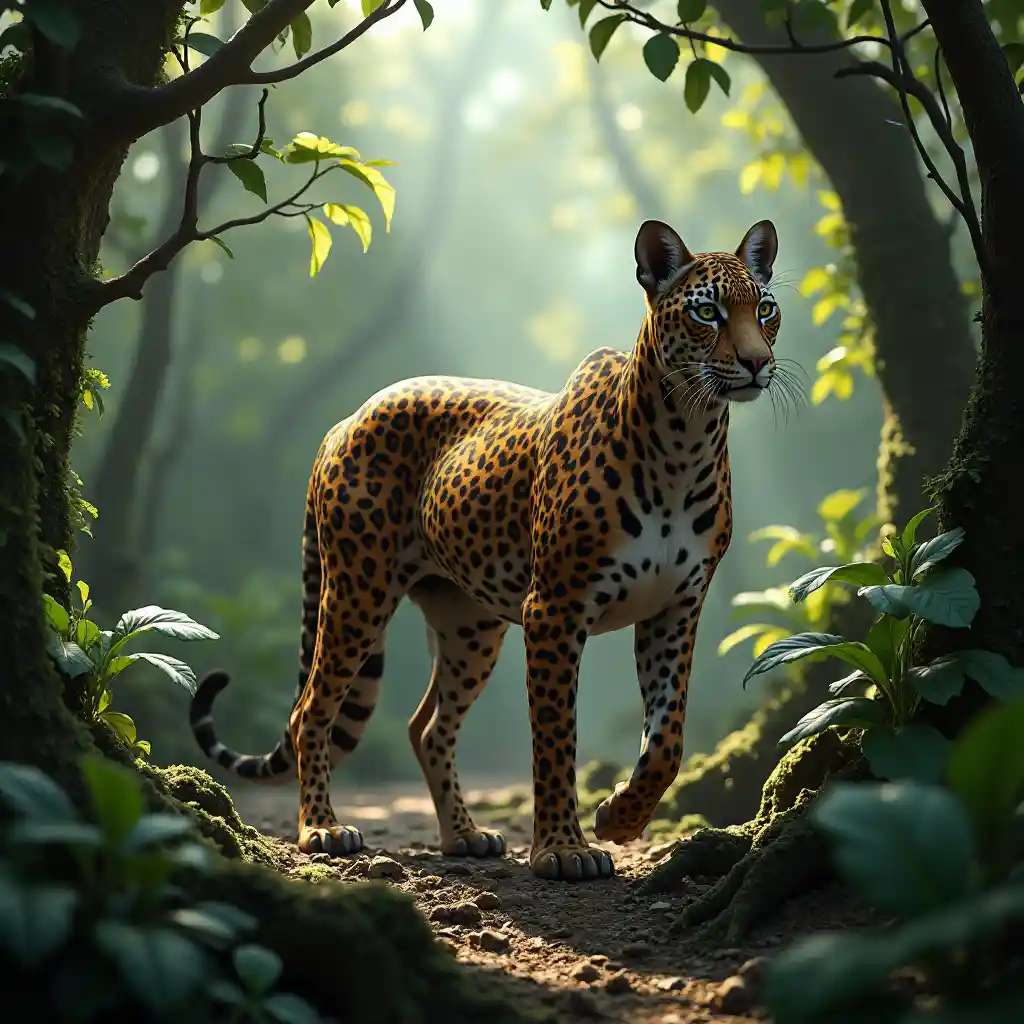 Tengeneza picha halisi ya mwanamke mwenye fahari katika msitu wa mvua. Mwanamke apaswa kuonekana akiwa na mwili mzima, akionyesha umbo lake lenye misuli na manyoya yake yenye mado. Ni lazima iwe mchana, na nuru ya jua yenye madoadoa inapita kwenye paa kubwa, ikiangaza manyoya ya mwanamke. Hakupaswi kuwa na vitu vya bandia, na mwanamke hapaswi kuwa na kolia, au alama za mwili. Tafadhali kumbuka kuheshimu hadhi ya kiumbe na asili ya pori katika picha hii