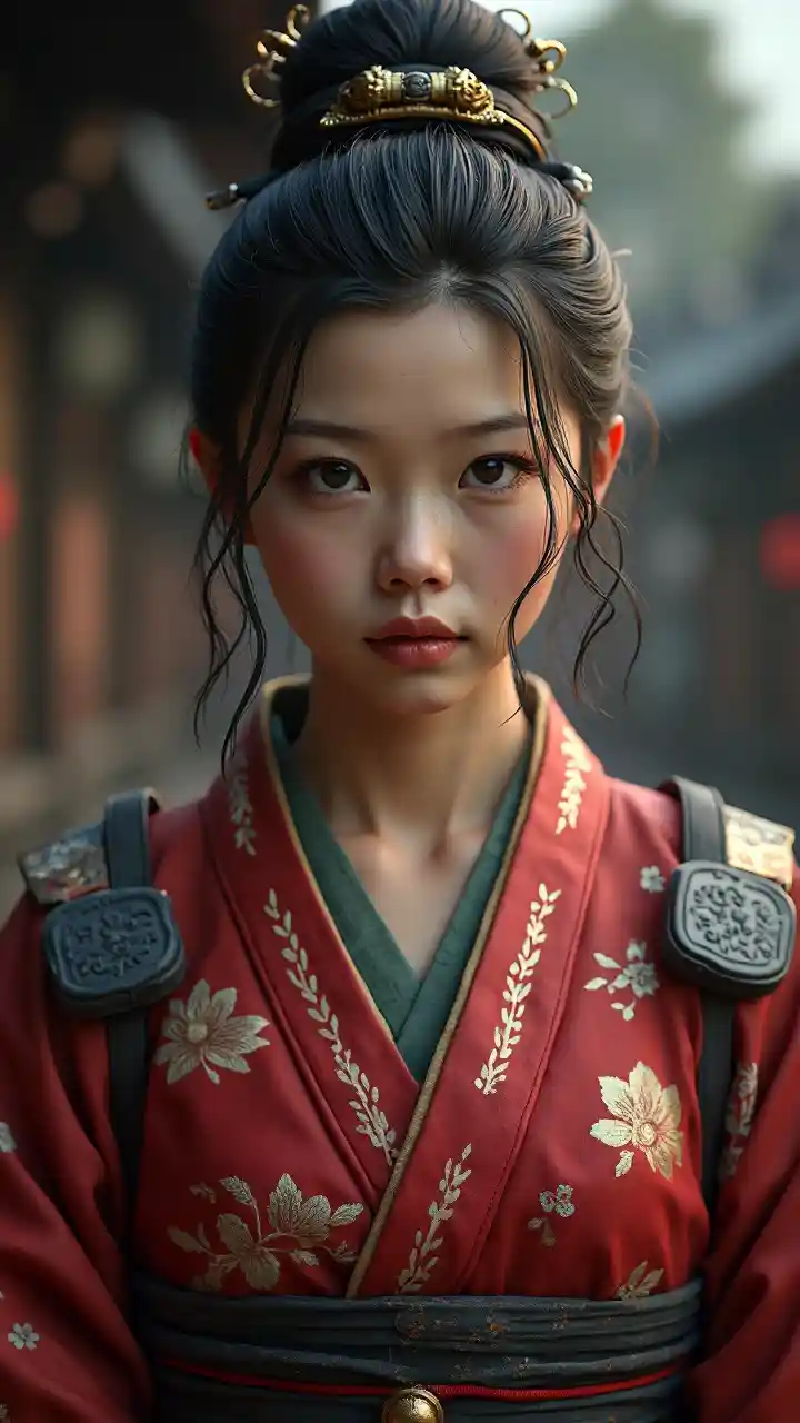 mwanamke japan with samurai costume, foto nusu badan, Ultra kweli binadamu picha, kweli, raytracing, Cinematic, Ultra HD, Upigaji picha Professional, ultrafine kina, maelezo ya wa, maelezo ya utani