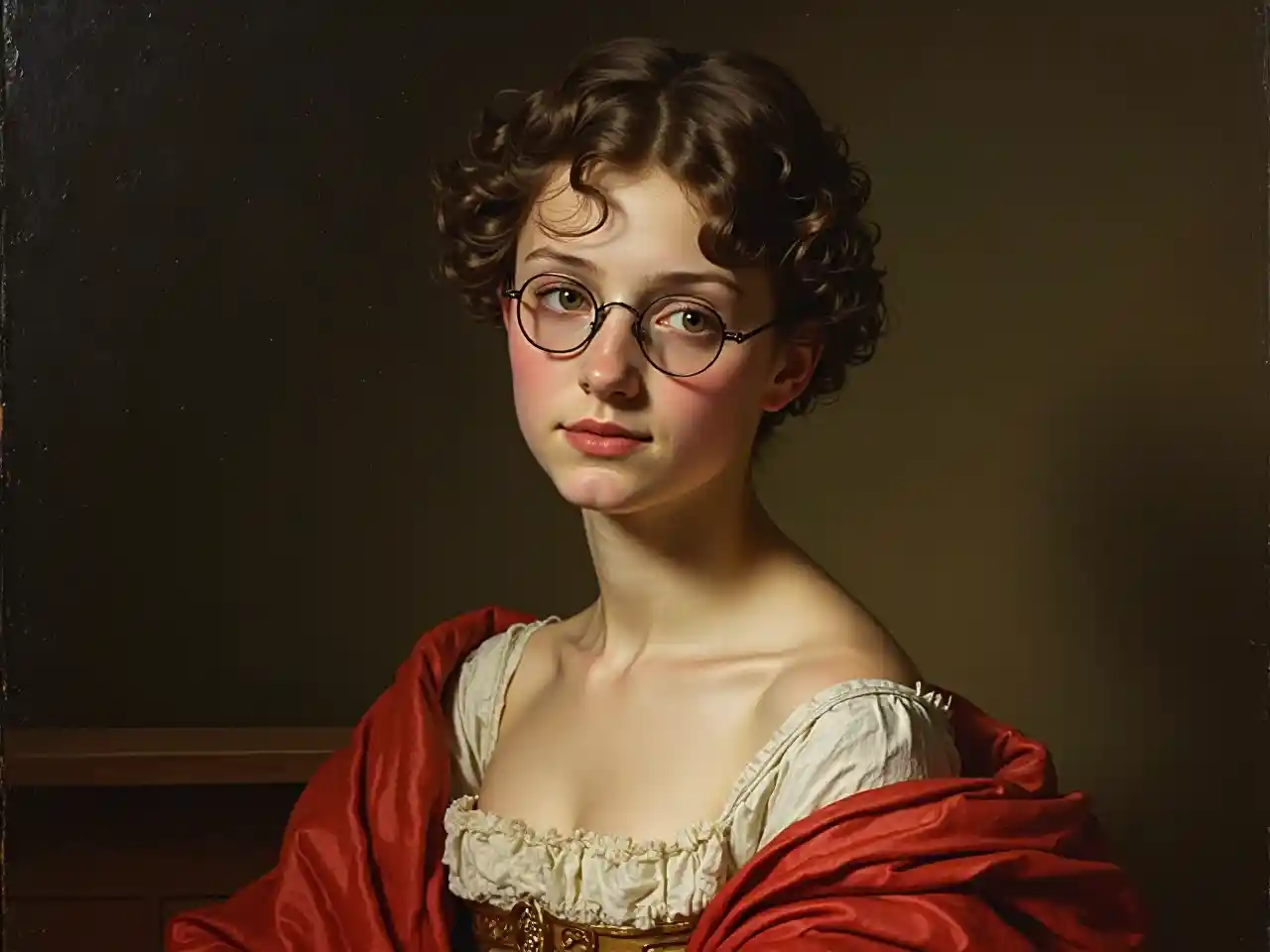 ColtonMchoro wa Rembrandt Van Rijn wa mwanamke mchanga mwenye sura nzuri mwenye nywele fupi, mwenye mwili mzuri, uso mzuri, mwenye miwani, na kifuniko cha rangi ya rangi ya juu
