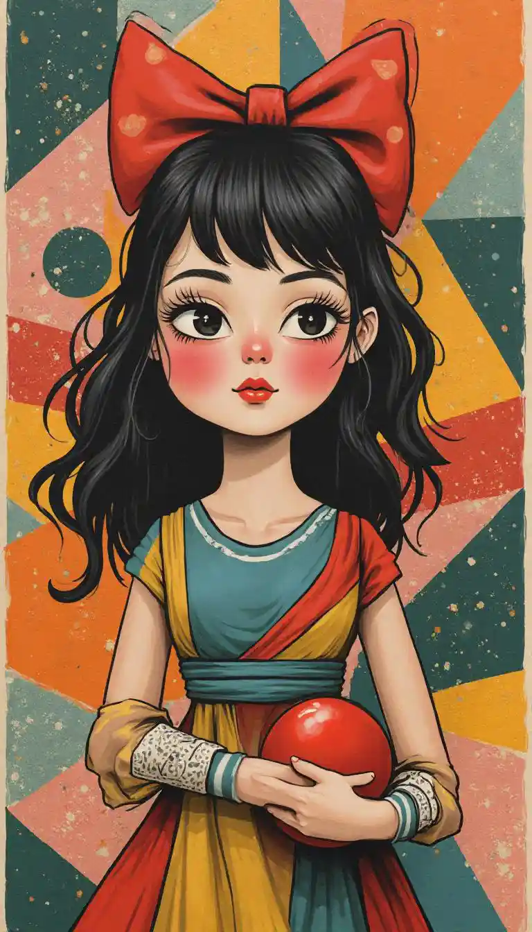 (kiongozi,ubora bora,),(magazeti cover:2.0),Retro,Collage Art,msichana,Kuzunguka rangi maumbo ya kijiometri,Maelezo mazuri,4k HD,Picha Writi