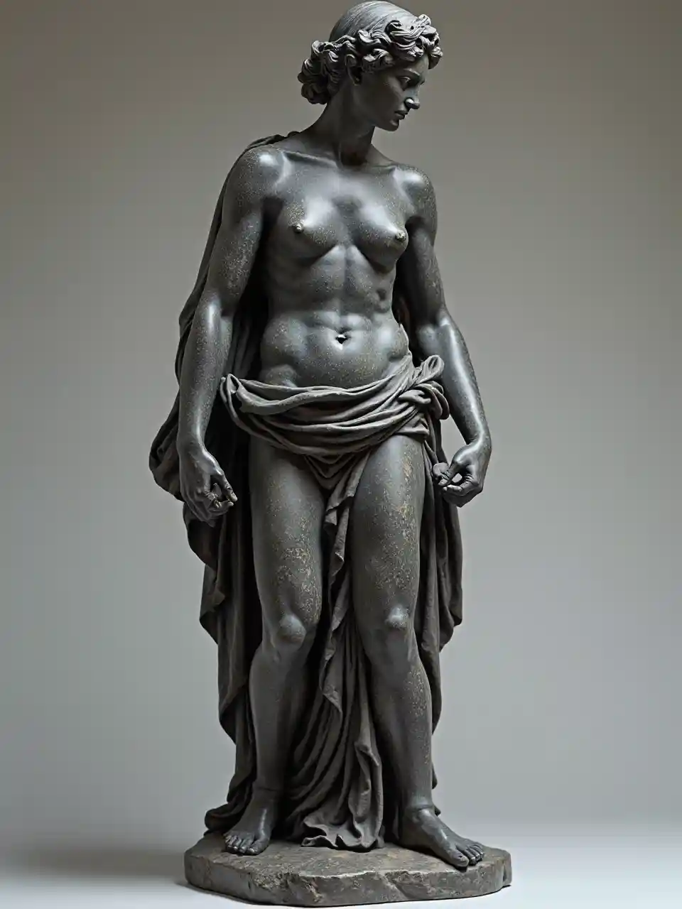Sanamu ya Roma ya mwanamke mzima nyeusi na nyeupe iliyotengenezwa kwa marumaru