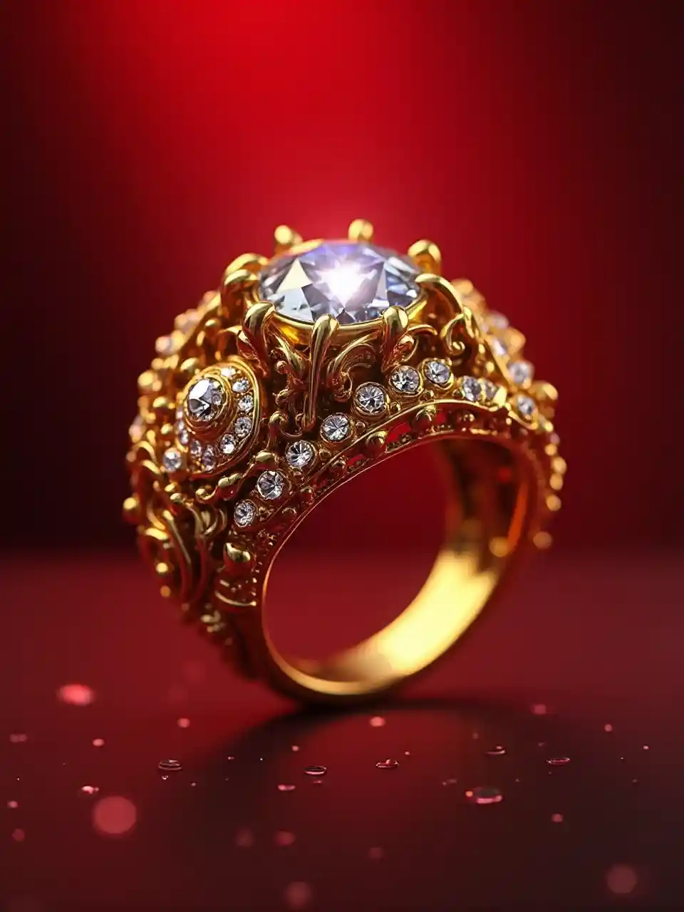 JacobRoyal dhahabu pete na almasi, fantasy style, background mkali, rangi tajiri, tofauti mwanga, rangi ya kina, maelezo ya juu
