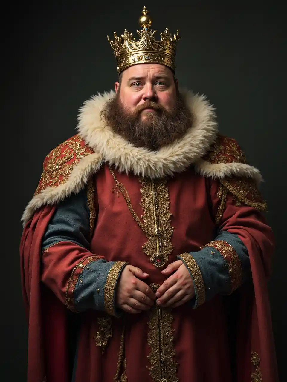 Mfalme mnene mwenye mavazi ya kifalme ya enzi za kati na taji