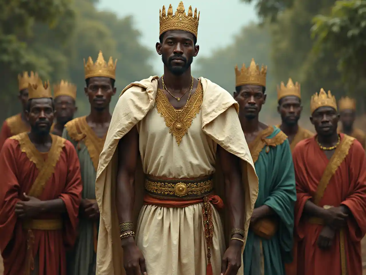 Tengeneza picha ya mkuu wa Nigeria akiwa amesimama katikati ya wazee