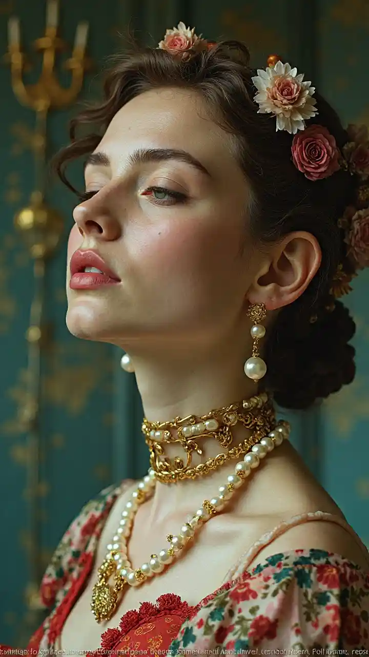 Mwanamke Mrusi Mwenye Vito vya Lulu Katika Mtindo wa Byzantine