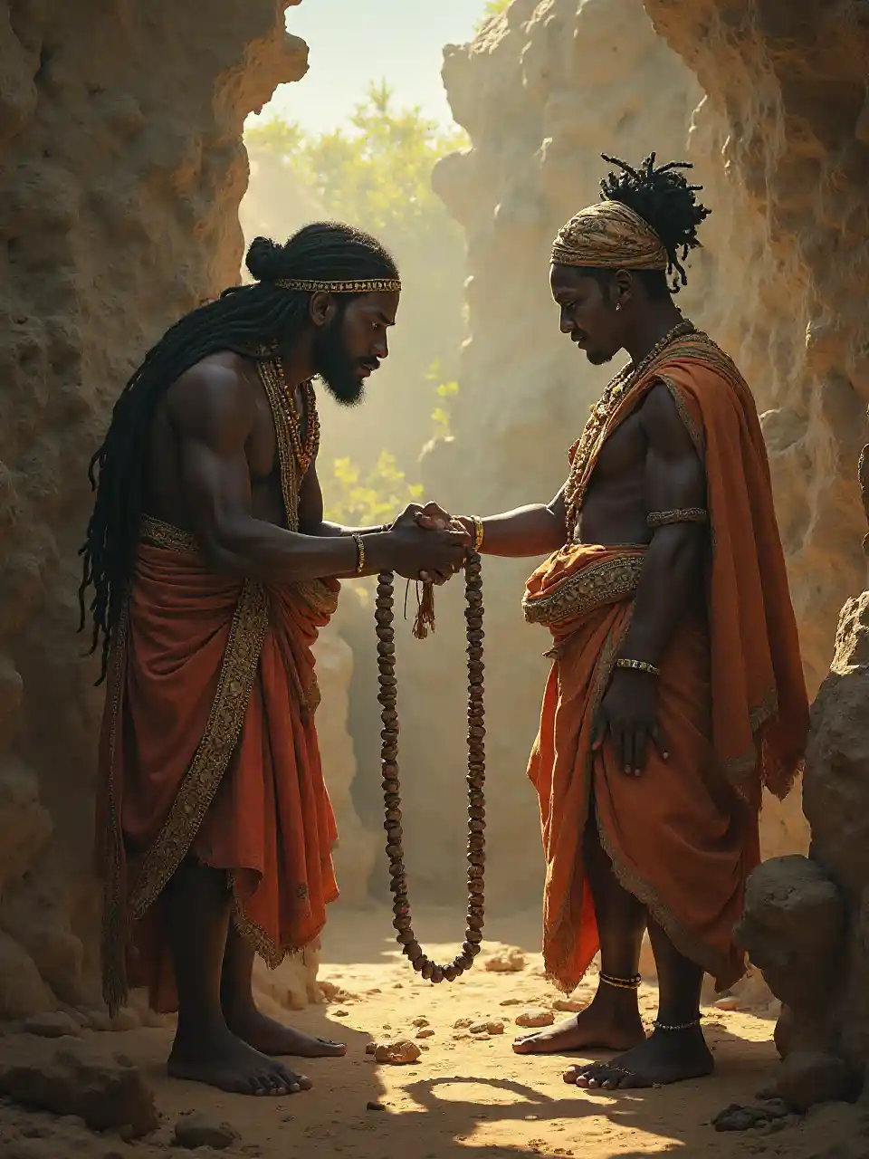 NoahUnda picha ya Orunmila akipokea mnyororo mtakatifu wa Opele kutoka kwa Olodumare, mungu mkuu, wakati wa uumbaji wa ulimwengu.