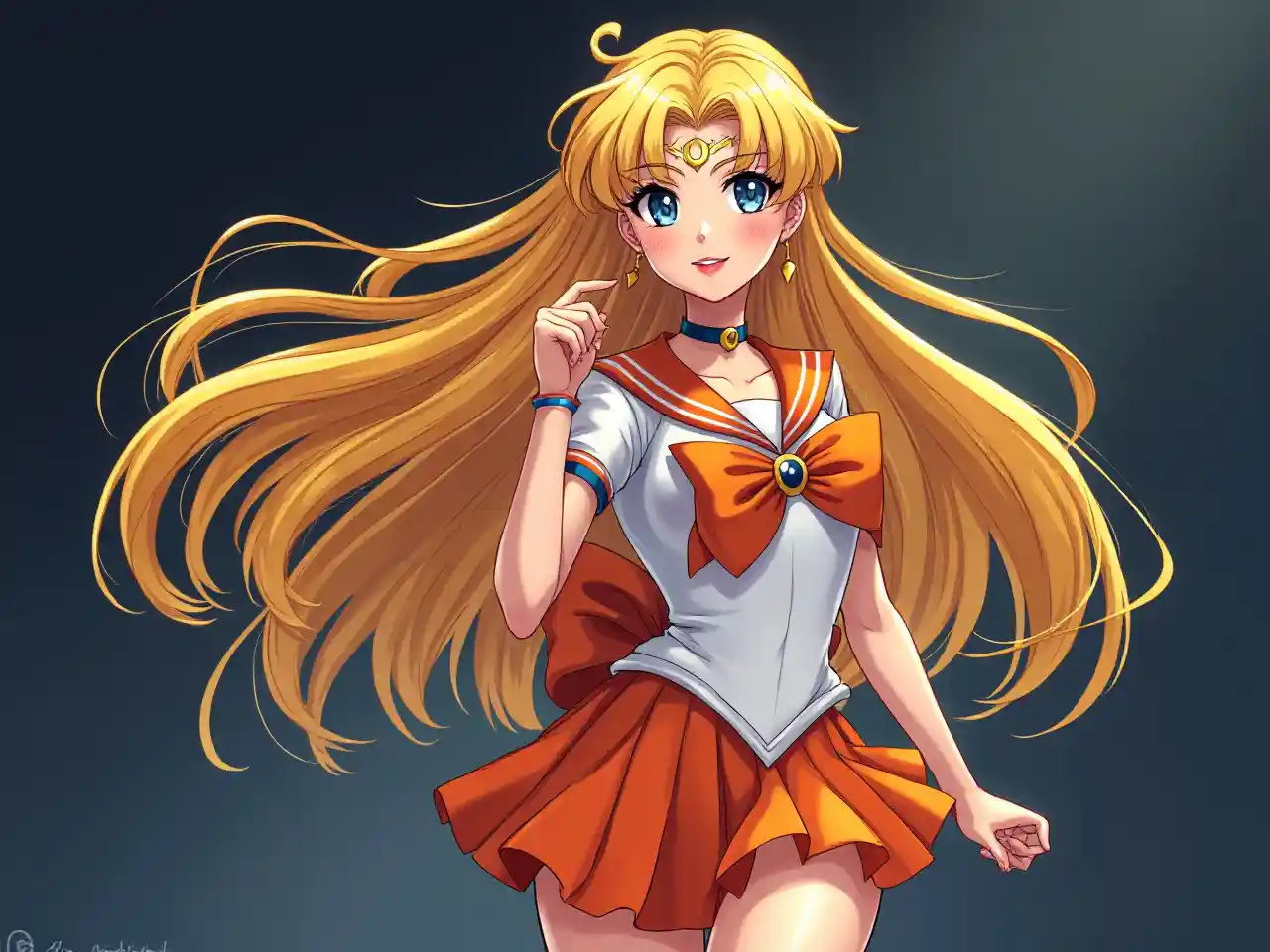 Beauty kweli baharia Venus na muda unaopita nywele njano , amevaa nyeupe classic msichana kichawi baharia sare na kola ya rangi ya manjano, upinde wa bluu, cho na skirt fupi ya rangi ya manjano. Viatu vya bluu, katikati ya paji la uso, kivuli cha dhahabu, na uso wenye upole. Mapambo mazuri ((mchanga wa nyusi)) . Tabasamu.pamoja na mwili kamili mtazamo, nguvu ya msichana.tofauti wazi.