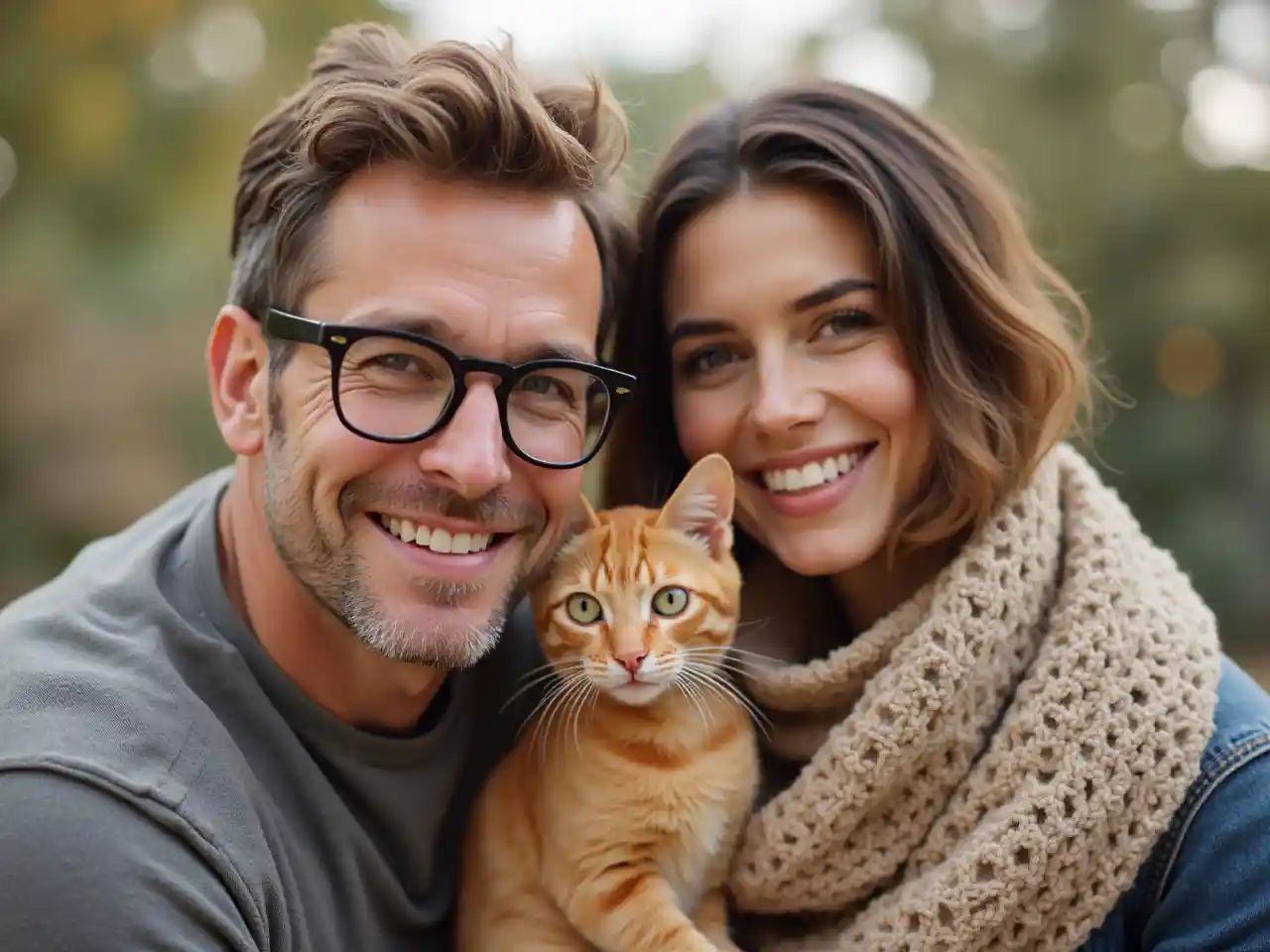 mtu na miwani na nywele nyepesi na mwanamke brunette na paka rangi ya machungwa katika San Diego