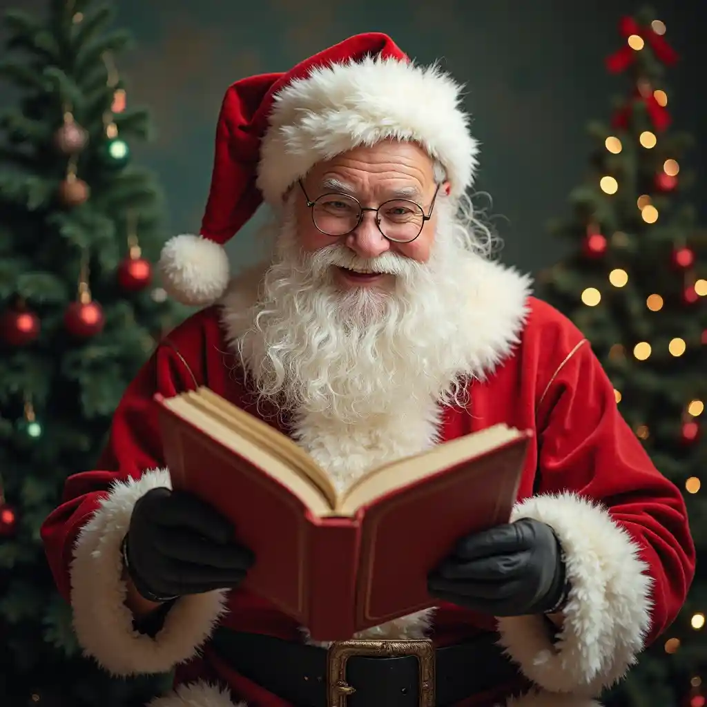 Baba Krismasi Anayetabasamu na Kusoma Kitabu Kikubwa