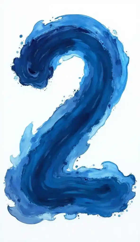 NathanKazi ya sanaa ya dijiti ya kushangaza kwa kuadhimisha miaka 2 ya Sea. Katikati ni kubwa, bluu ya kina idadi "2" kufanywa kwa brashi artistic kwamba