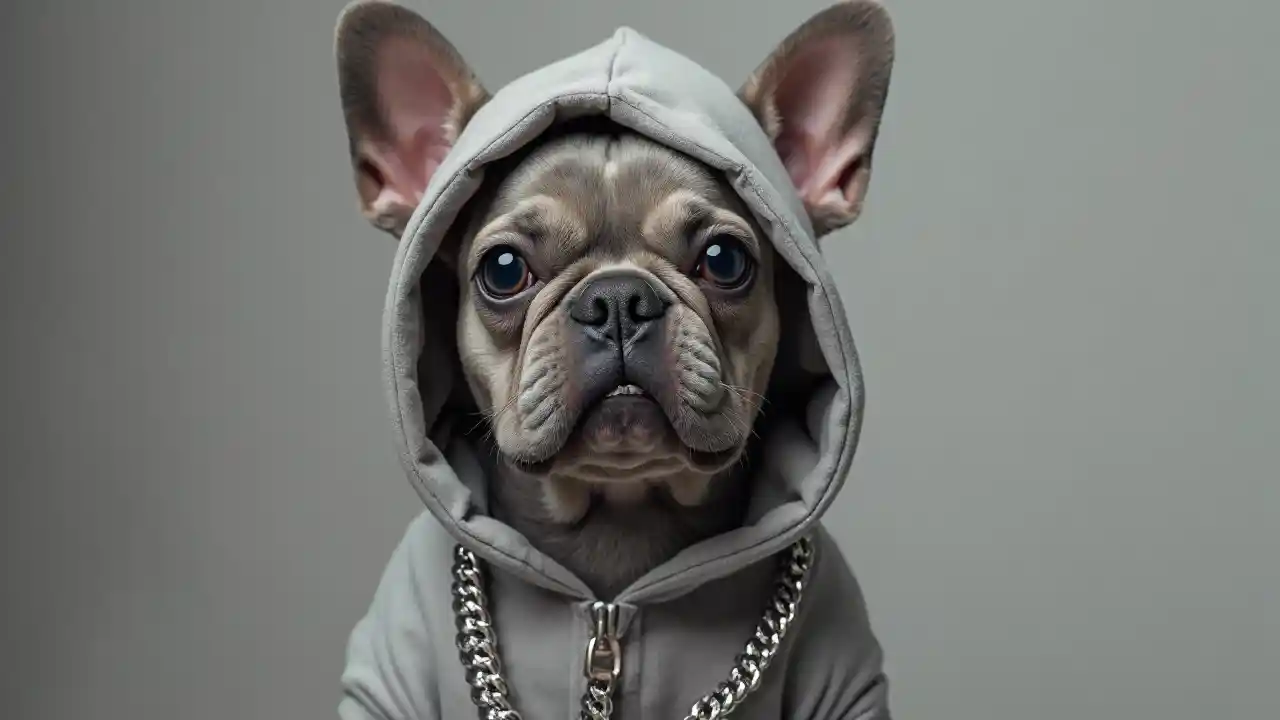 Bulldog ya Kifaransa ya fedha, hoodie, minyororo