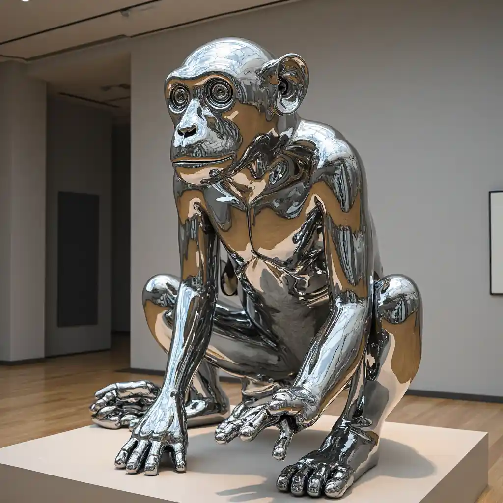 YamyRAL-CHROME, sanamu kubwa ya tumbili ya fedha, iliyoonyeshwa katika nyumba ya sanaa