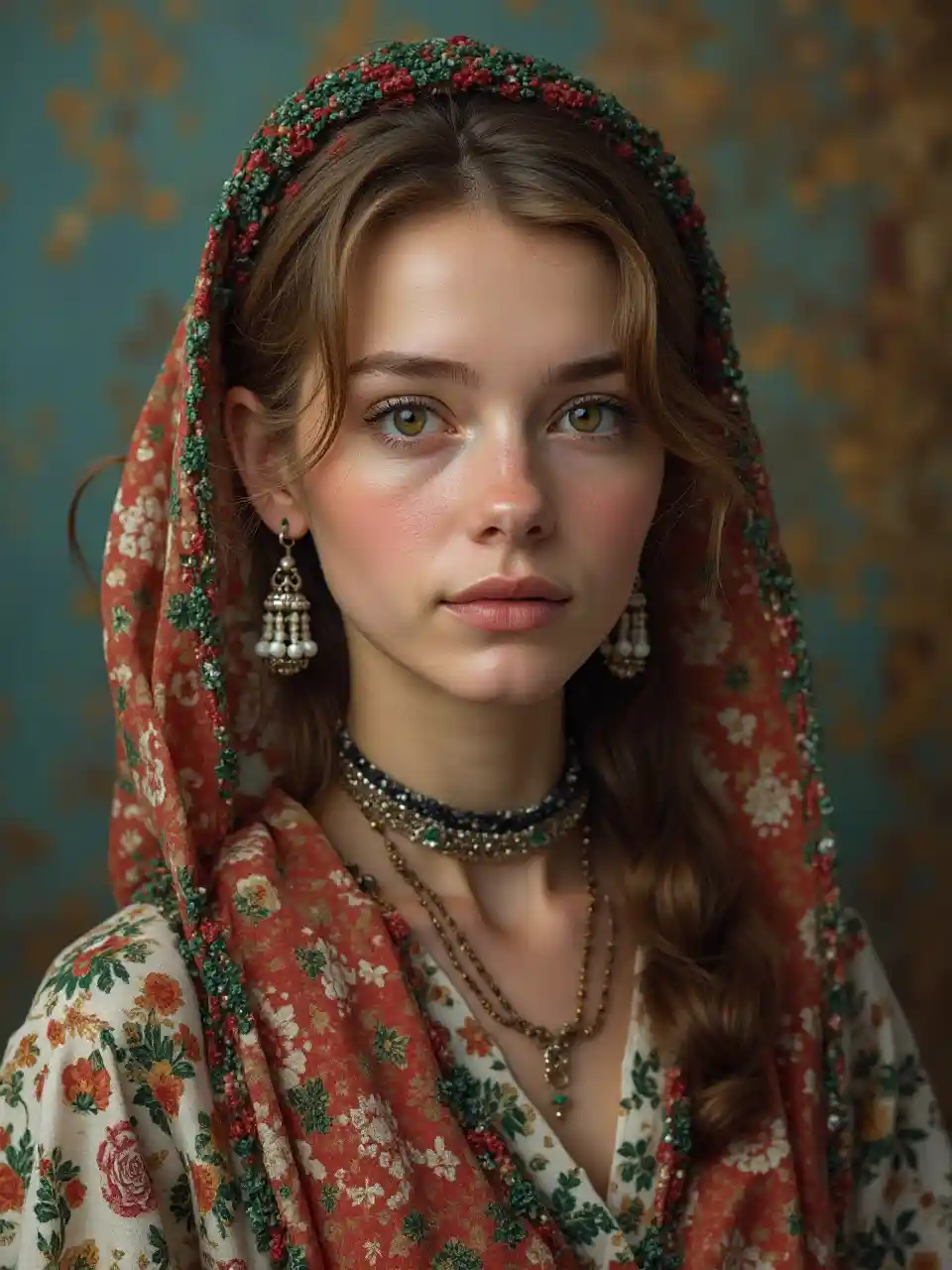 Msichana Mslavia Mwenye Viungo vya Dhahabu na Taji ya Maua