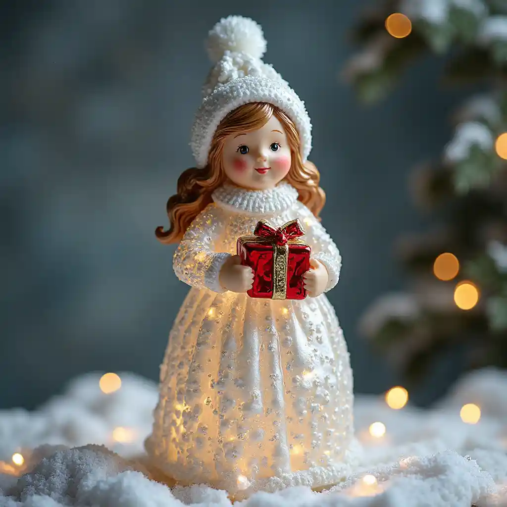 Snow Maiden kioo ndogo kioo takwimu kushikilia sanduku zawadi, toy Krismasi kwa ajili ya mti wa Krismasi