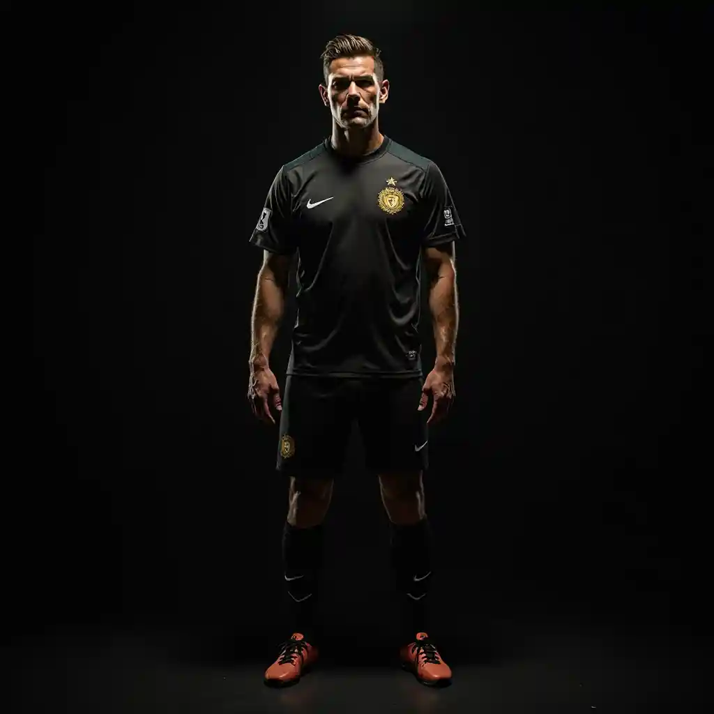 Mwili kamili, picha, mbele akikabiliwa, mchezaji wa soka, background nyeusi, anga nyeusi, simba