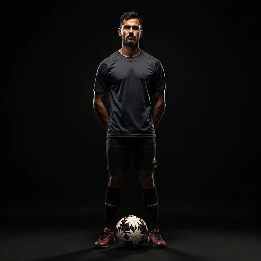 Mwili mzima, picha, mtu akikabili mbele, mchezaji wa mpira wa miguu, background nyeusi, anga nyeusi, simba na simba nyuma