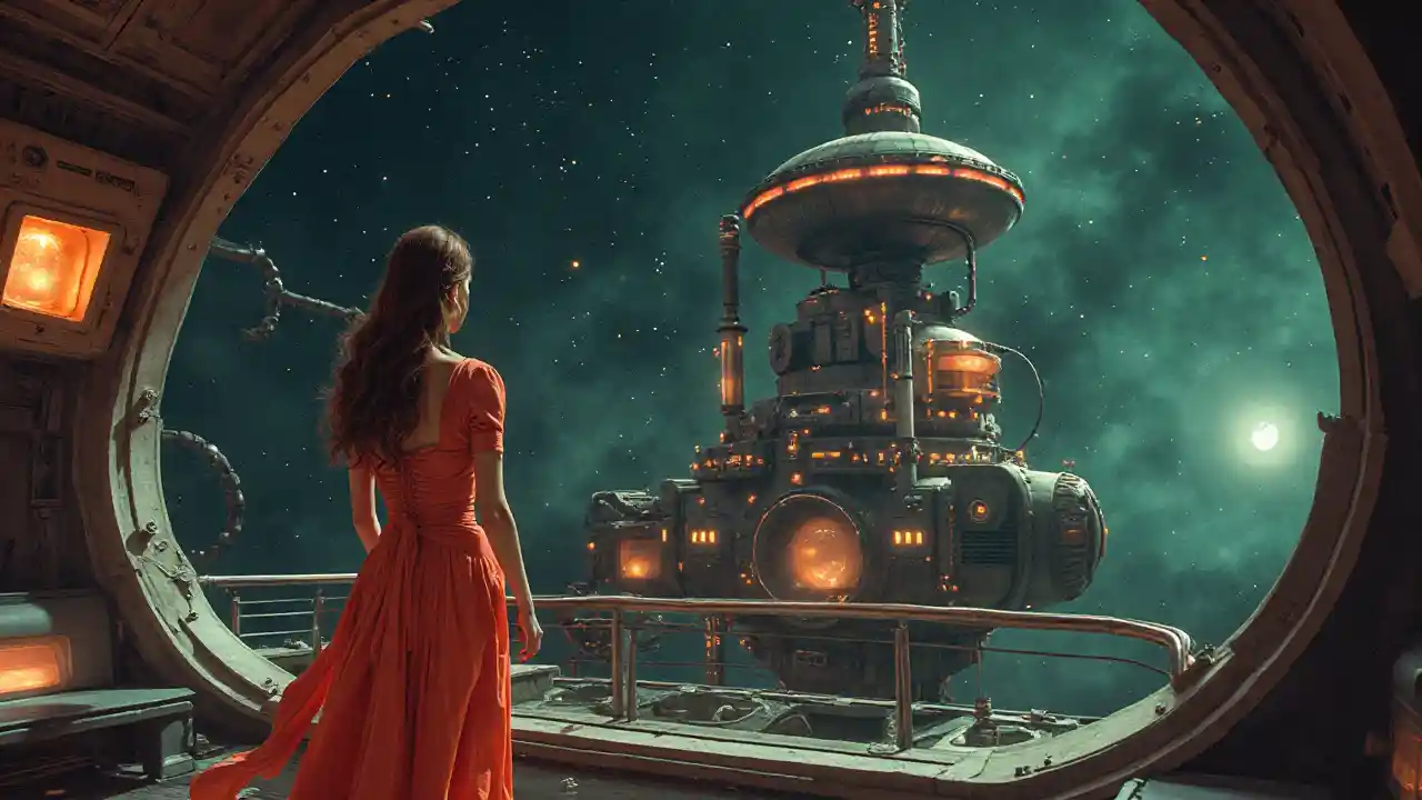 Leilamwanamume na mwanamke juu ya meli ya angani, sayansi, style