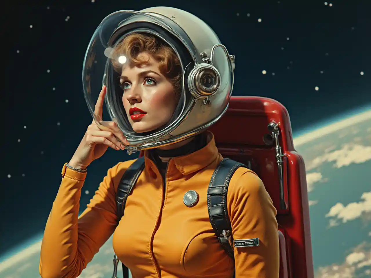 Pinup wa Miaka ya 1950 Akiwa Na Kofia ya Kuegesha na Kifurushi cha Ndege