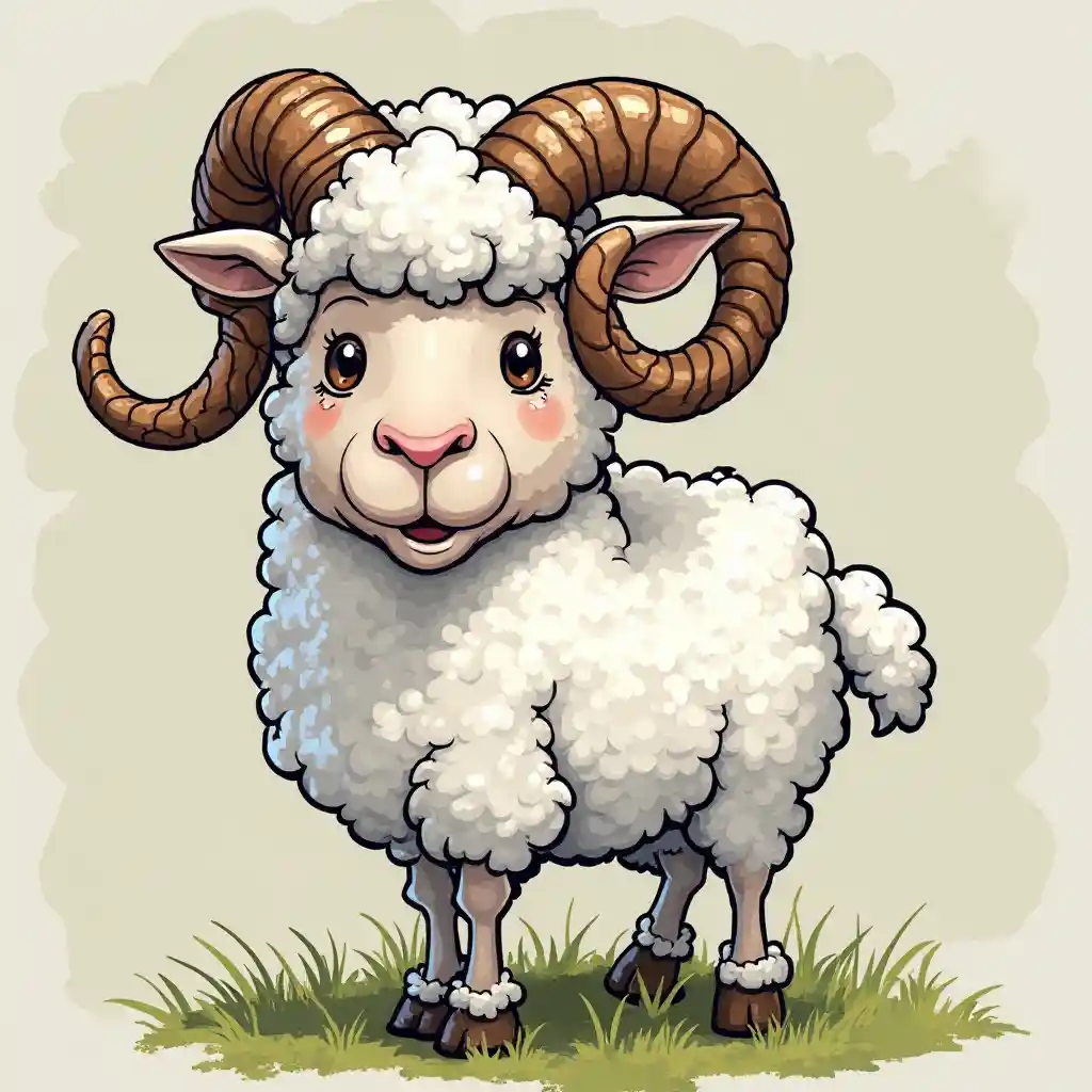 kondoo wa katuni wenye pembe sifuri waliozunguka