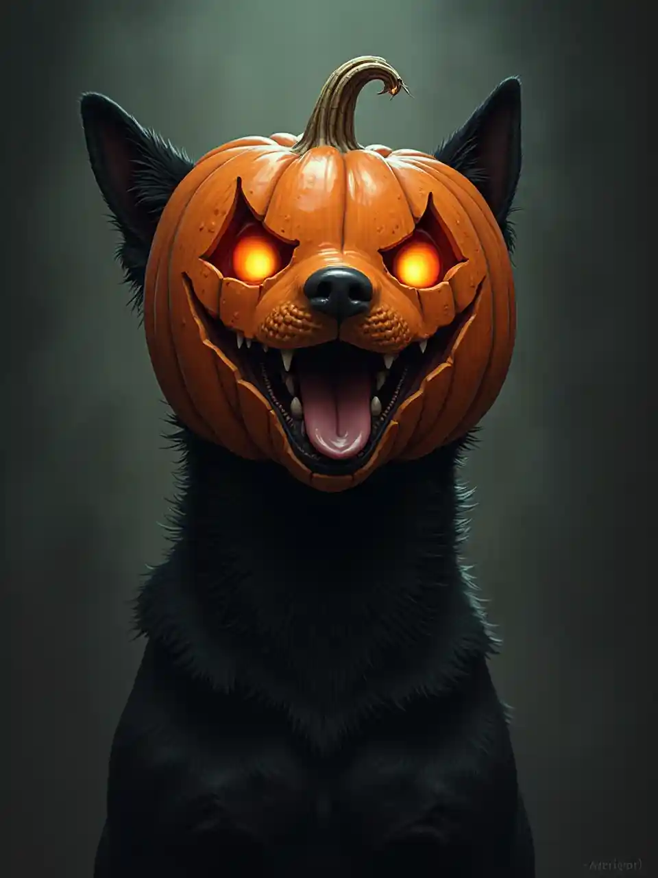 Mbwa Mweusi Mwenye Kichwa cha Dudu cha Halloween