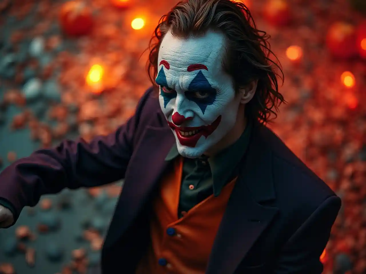 Tom Hiddleston amevaa mavazi ya Halloween ya kutisha, Makeup ya Sinister, pose yenye nguvu, rangi zenye nguvu, mandhari ya kutisha