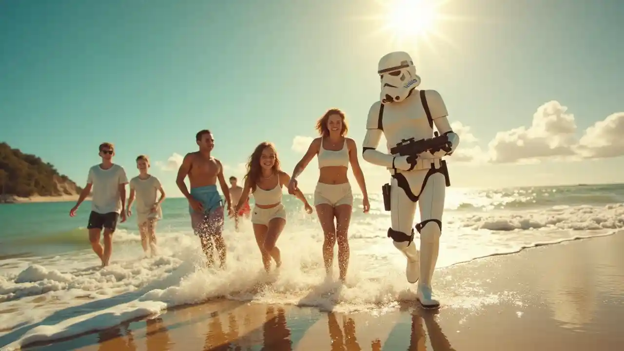 filamu bado, Storm Trooper, taa rangi, ubora wa ajabu, Wallpaper, kundi la wavulana na wasichana kukimbia pwani, kicheko chao resonating kati ya sauti ya mawimbi kuvunja kwa upole katika pwani. Jua liliangaza kwa nguvu, likionyesha katika maji ya kioo na kupasha mchanga wa dhahabu chini ya miguu yake. Baadhi yao hucheza kucheza kwa kurusha frisbee ambayo hupiga kwa kasi upepo, huku wengine wakijenga majumba ya mchanga yenye minara mirefu. Wanandoa wao wanajiingiza baharini, wakiruka kati ya mawimbi, huku marafiki wao wakiwafufua kutoka pwani. Karibu na ufuo, mvulana mmoja anapiga magoti ili kukusanya konokono, akivutiwa na miundo na rangi zao. Upepo wa saladi unawagusa nyuso, na harufu ya bahari inawajaza nishati na furaha. El ambiente está lleno de camaradería y libertad, ambapo kila wakati anahisi milele na kamili ya furaha ya majira ya joto
