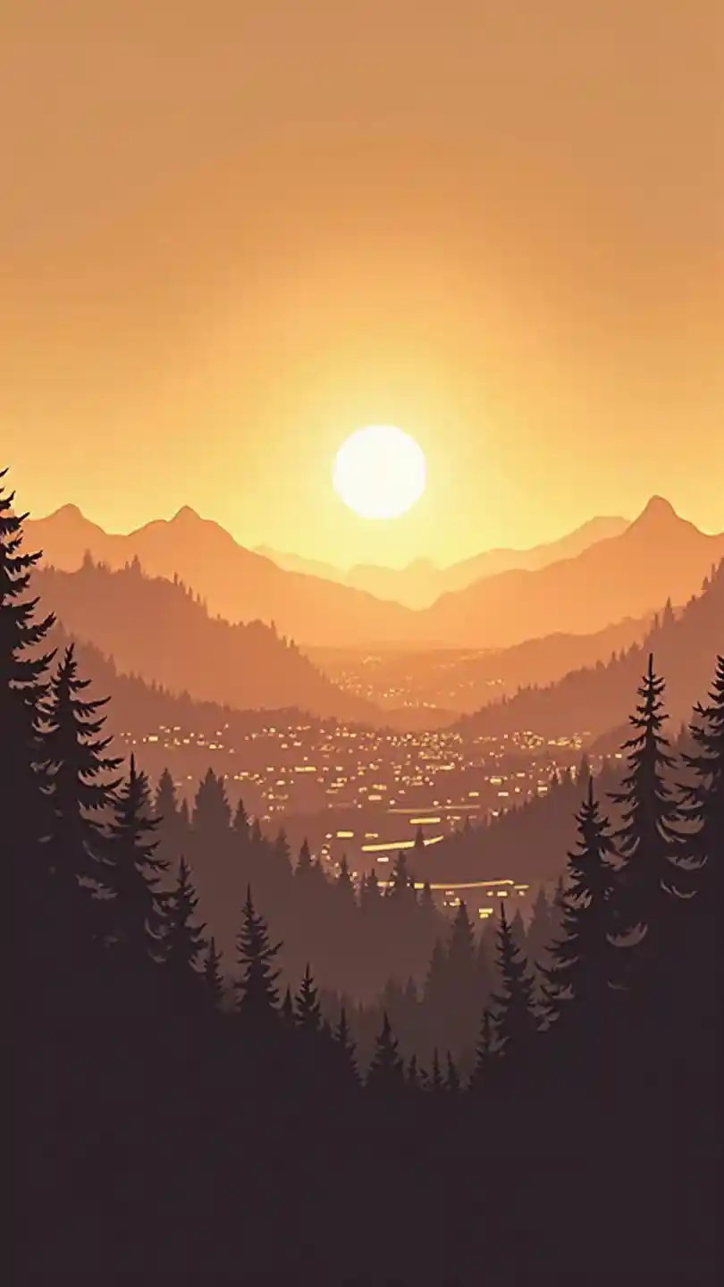 Mfano wa Kuzuka kwa Jua Juu ya Jiji Lenye Mteremko