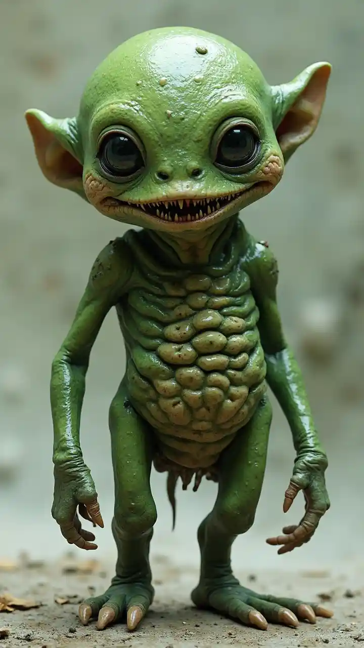 Kiumbe Mwangavu wa Kijani-Ajani Mwenye Macho Meusi