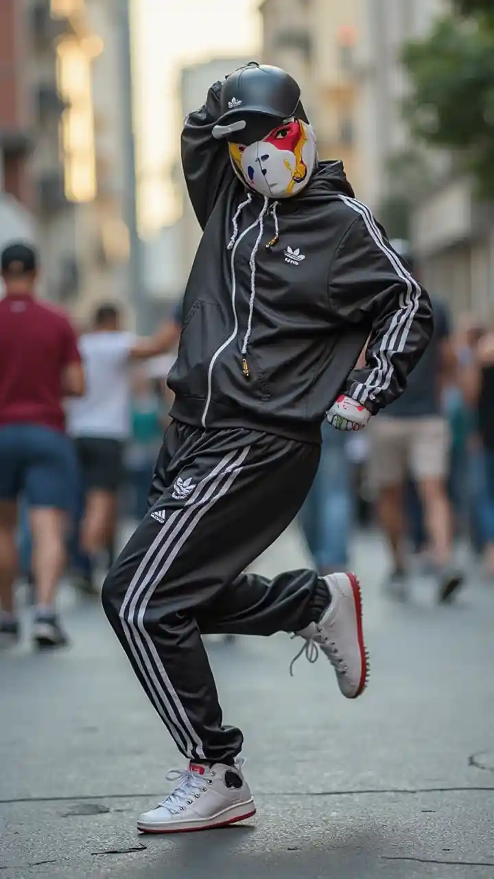 ANNAThanos kuvunja ngoma katika barabara kuvaa adidas
