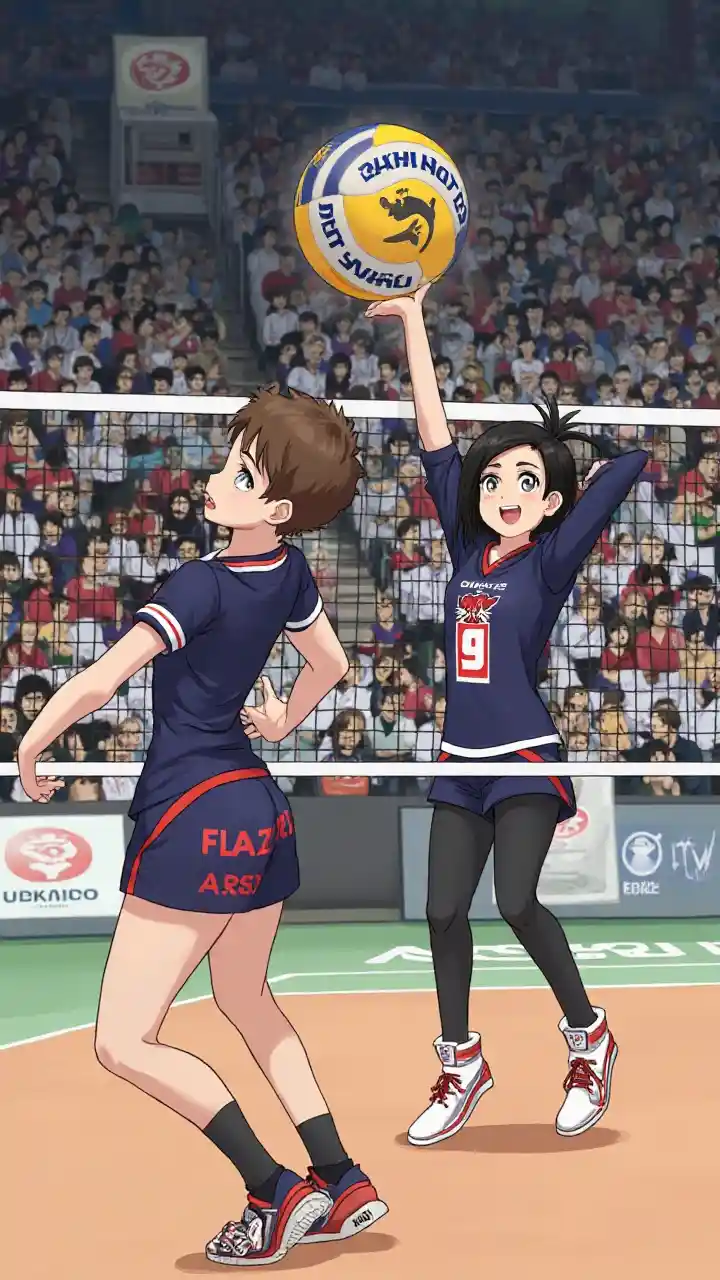The match between the MSBY Black Jackals and the Schweden Adlers was a thrilling showcase of volleyball talent, with fans eagerly filling the arena. First Set: MSBY started strong with Hinata Shoyo's powerful jump serve, setting the tone. Kageyama Tobio quickly responded, assisting Korai Hoshiumi for a fierce spike. MSBY's Atsumu Miya executed a perfect set to Bokuto Koutarou, who delivered a lightning-fast spike to take the lead. The score remained tight, but Sakusa Kiyoomi's float serve extended MSBY’s advantage. The first set ended 25-22 after Hinata executed a quick attack. Second Set: The Adlers began with a jump serve from Kageyama, taking an early lead. Bokuto fought back with a strong spike, but Ushijima dominated with powerful attacks. Despite MSBY’s efforts, the Adlers won the second set 25-23, leveling the match. Final Set: With tension high, MSBY served first, quickly taking a 12-10 lead. Ushijima struck back, but Atsumu set up Hinata for another quick spike, bringing the score to 22-21. In the final moments, Atsumu's jump serve clinched the match 25-22. The final score was 25-22, 23-25, 25-22 in favor of the MSBY Black Jackals. It was a remarkable display of skill and teamwork, culminating in a hard-fought victory.
