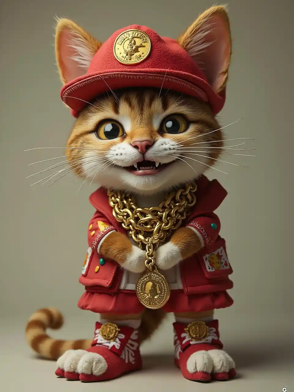 Mhalifu Top Cat amevaa minyororo ya dhahabu, grill ya dhahabu, na soksi mpya nyekundu na nyeupe na texture nyingi