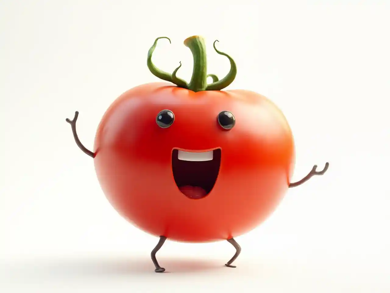 Jackhalisi furaha pande zote nyanya kucheza, background nyeupe, katika pixar style!
