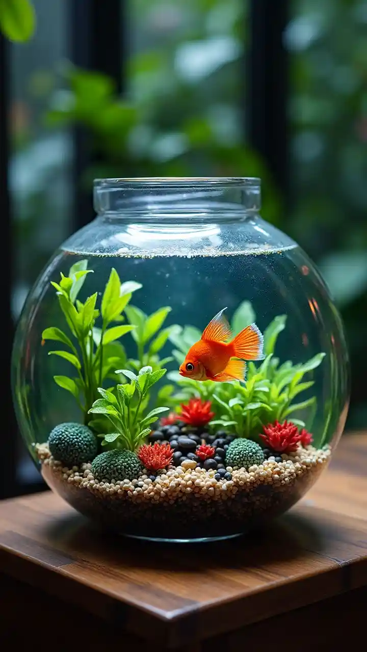 Mchanganyiko wa samaki wa mviringo na samaki wa kitropiki wenye mwangaza sana. Historia ya nyumbani