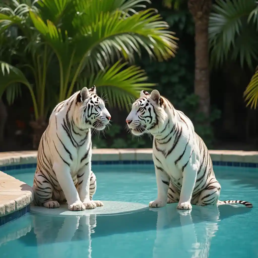 EllaNdama weupe wawili kando ya dimbwi la mvua pamoja na mitende