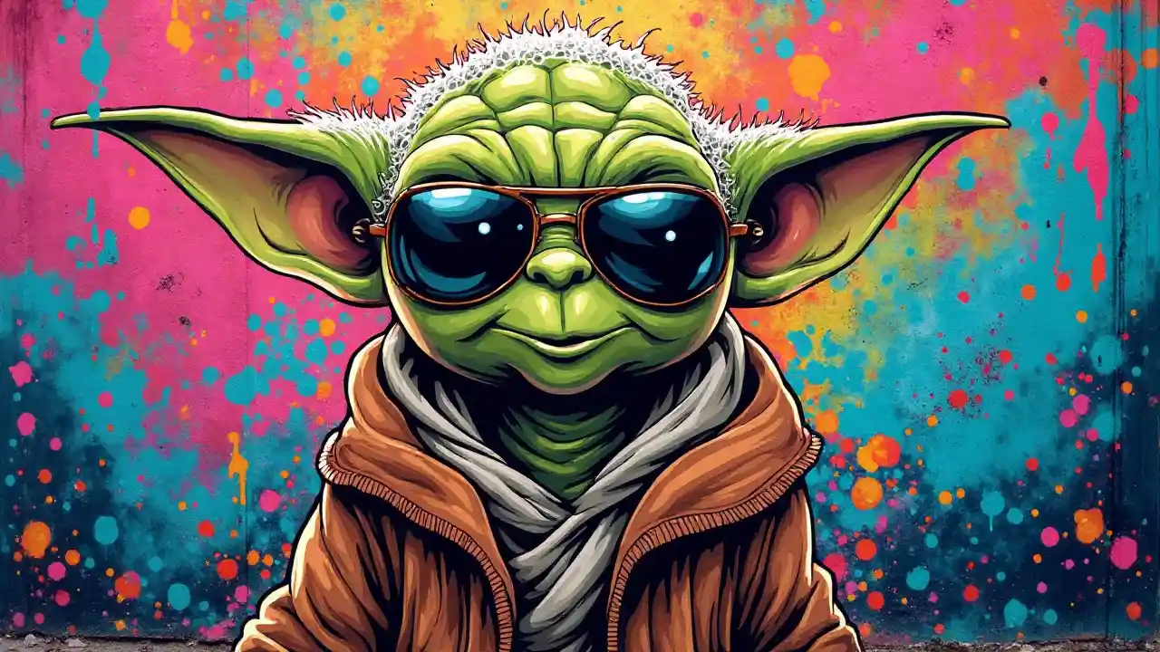 Hebu wazia ukuta wenye picha za picha za picha za picha za picha za picha za picha za picha za picha za picha za picha za picha za picha za picha za picha za picha za picha za picha za picha za picha za picha za picha za picha za picha za picha za picha za picha za picha za picha za picha za picha za picha za picha za picha za picha za picha za picha za picha za Kazi ya sanaa ina rangi zenye nguvu na mistari yenye nguvu, ikichukua kiini cha nishati ya mijini wakati Yoda anapata nafasi ya kupumzika katikati ya mifumo ya kuzunguka na maumbo ya kujieleza. Toleo hili la mtindo wa tabia ya kihistoria huongeza twist ya kisasa na splashes ya neon na hisia ya kucheza.