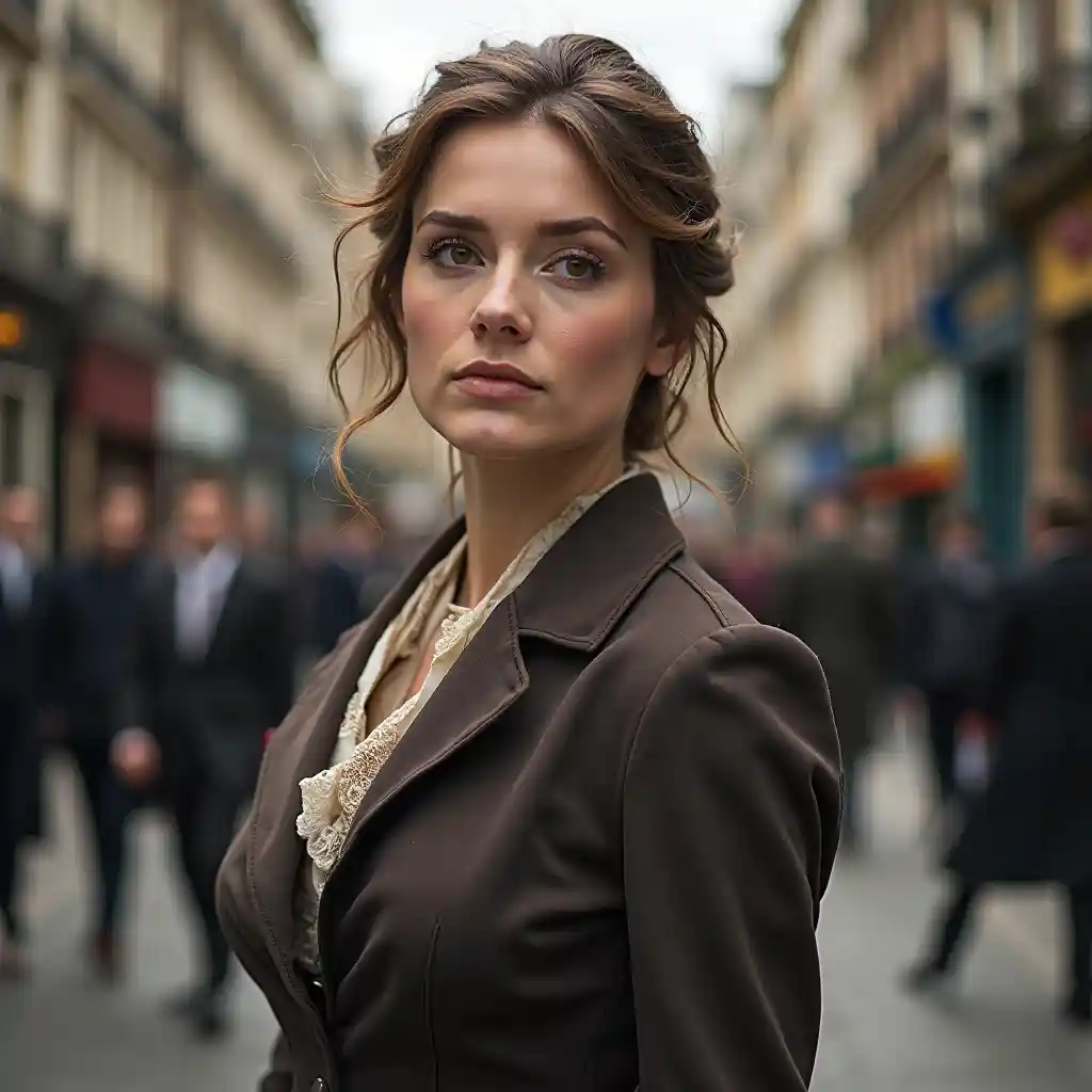 Mwanamke wa kimo cha 5.57 miguu, 132 paundi katika uzito, nyepesi nywele, macho ya kahawia, amevaa katika kipindi cha Victoria katika mji wa London