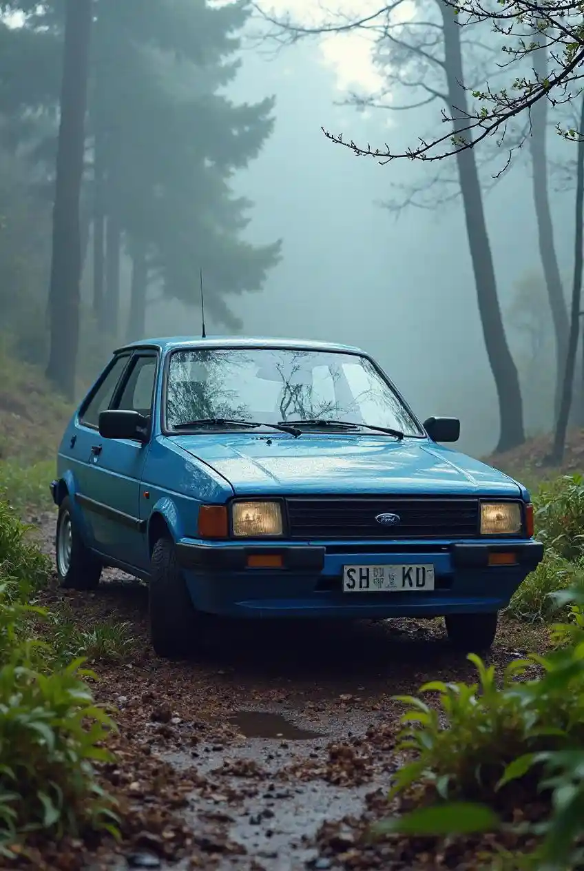 87 Bluu Ford Fiesta katika asili na 90s Vibes