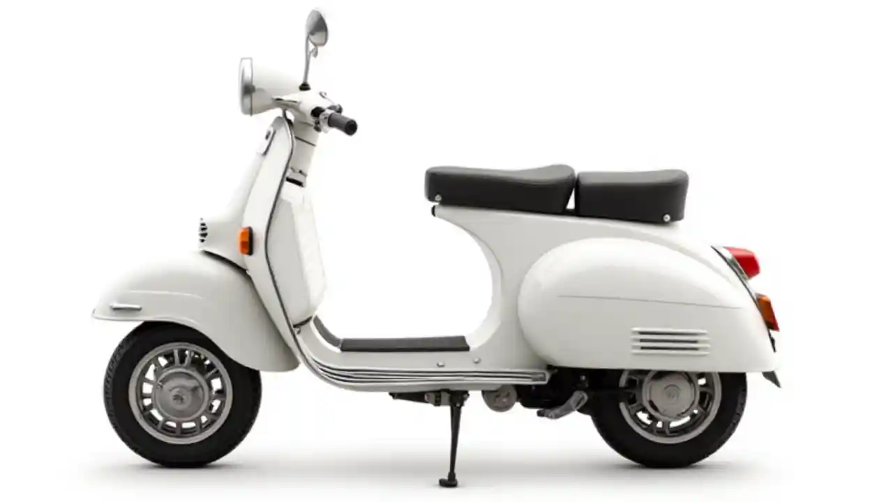 ANNAVintage nyeupe vespa, chini ya pembe mtazamo, background nyeupe, mockup