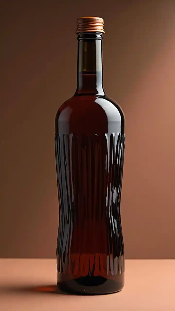 Chupa ya maji ya 750 ml kwa namna ya chupa ya mvinyo rangi nyeusi mate bila lebo y tapa de corcho rustic texture de cristal cutado difuminada de abajo hacia arriba en Set minimalista photographic color terracota