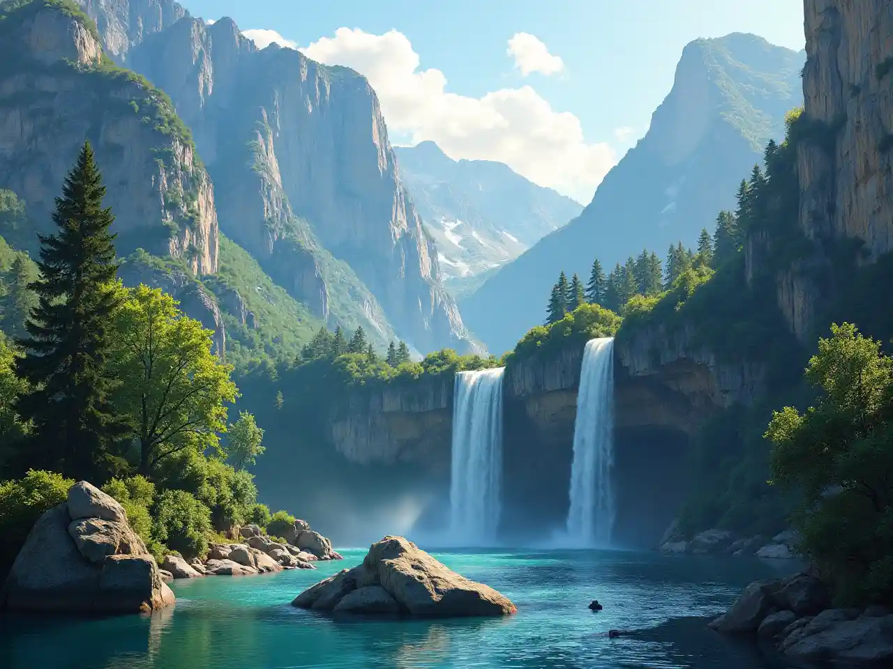 maporomoko ya maji ya kuvutia kutoka milima ya ajabu na ndege wa ajabu