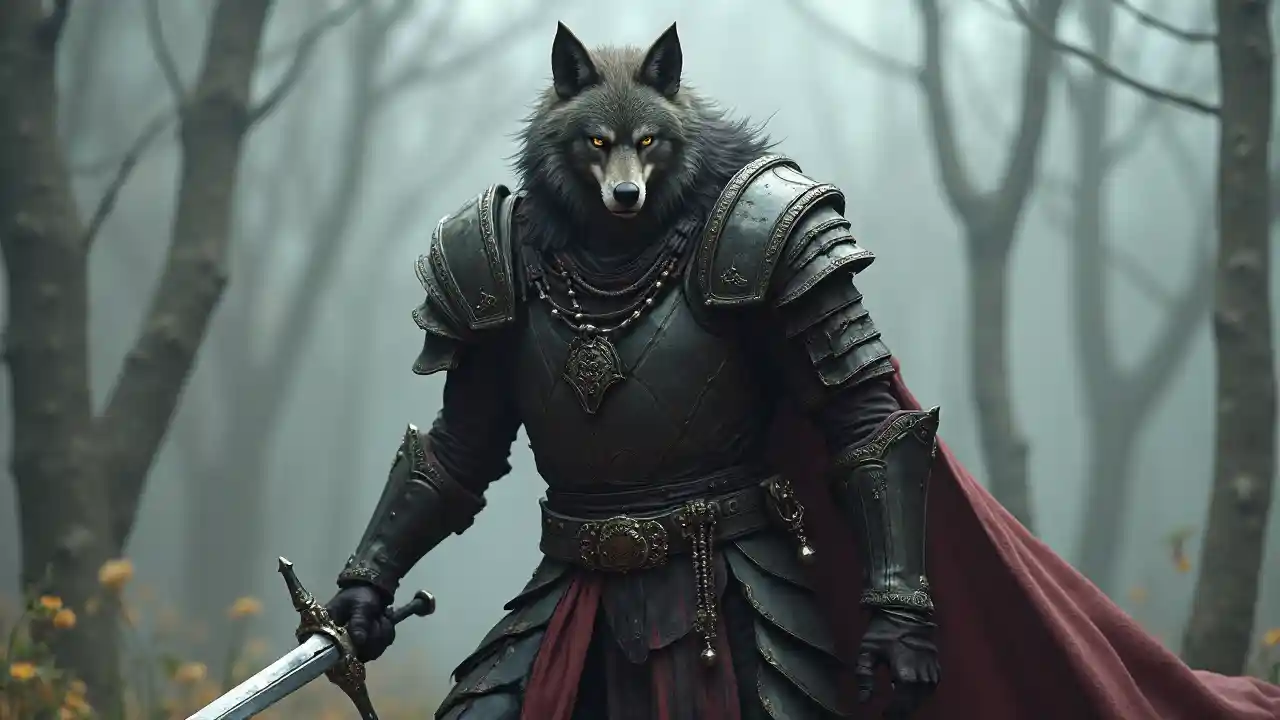 Mbwa-Mwitu Mweupe Mwenye Nguo za Silaha au Upanga