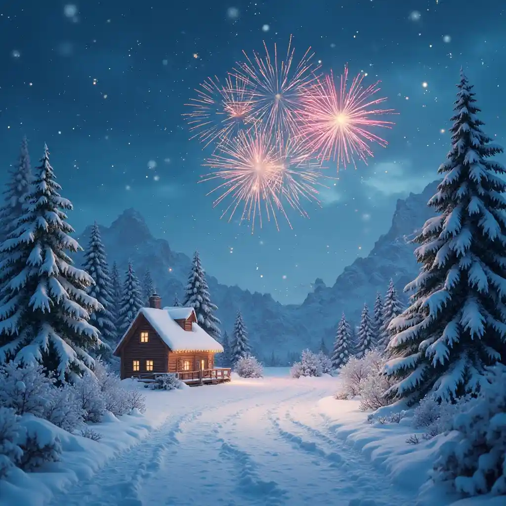 Mwangmandhari yenye theluji au mandhari inayokufanya ukumbuke Krismasi. Pia kuweka baadhi ya fireworks huko