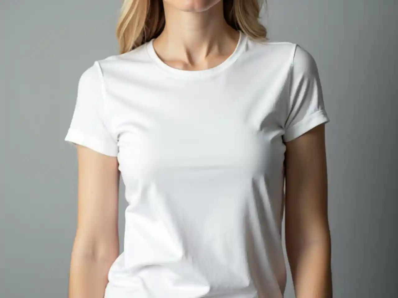 kiuno cha mwanamke aliyevaa shati nyeupe, mbele, kivuli kijivu