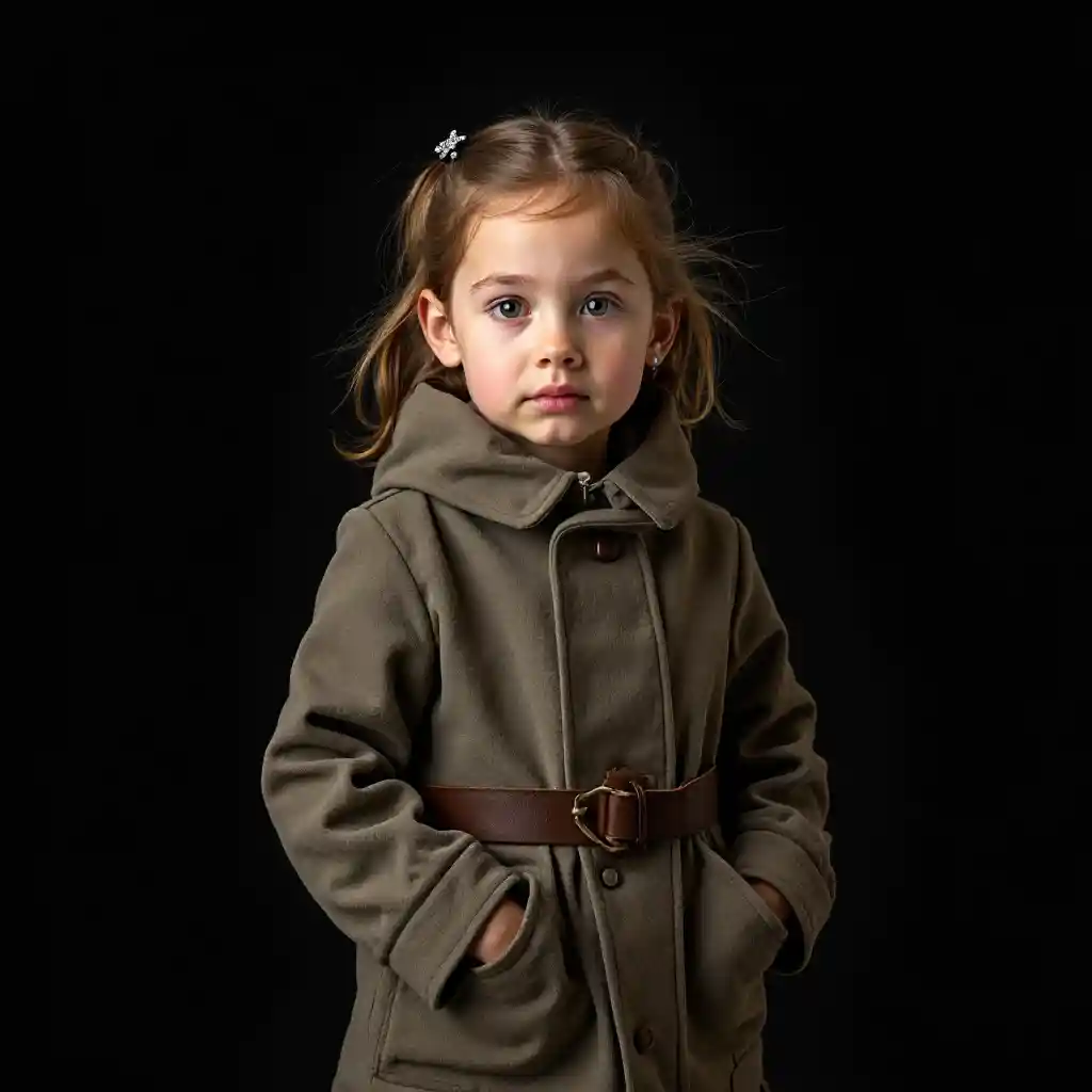 msichana wa Vita ya Ulimwengu ya 2 katika Mackinaw yote ya sufu, kutengwa, juu ya background nyeusi.