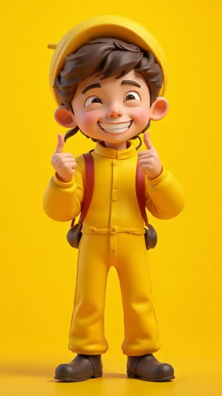 SawyerMchezaji wa mbio mwenye furaha na anayecheka akiwa na suti ya mbio ya rangi ya manjano